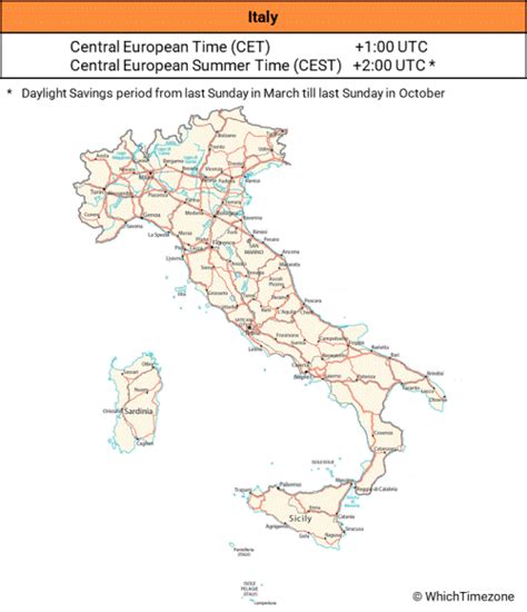 Italy Time Zone Map: A Travel Guide to the Best Places to Visit and Local Culture Italy is a country that offers a wide range of experiences for travelers, from its rich history and culture to its beautiful landscapes and delicious food. However, with so much to see and do, it can be overwhelming to plan a trip to Italy, especially when it comes to understanding the time zones and zip codes. In this article, we will provide a travel guide to the best places to visit and local culture in Italy, as well as explain the time zones and zip codes to make your trip planning easier. When planning a trip to Italy, one of the main pain points for travelers is understanding the time zones and how they might affect their itinerary. Italy operates on Central European Time (CET), which is one hour ahead of Coordinated Universal Time (UTC+1). This means that if you are traveling from the United States, you will likely experience jet lag due to the time difference. Additionally, it is important to note that Italy observes daylight saving time, so the clocks are moved forward by one hour in the summer months. Another pain point for travelers is understanding the zip codes in Italy. Unlike in the United States, Italian zip codes are five digits long and include both letters and numbers. The first two digits represent the province, while the remaining three digits represent the specific town or city. It is important to have the correct zip code when mailing or shipping anything to Italy. Now that we have addressed some of the pain points related to Italy travel, let’s dive into the best places to visit and local culture. Italy is known for its beautiful architecture, art, and history, and some of the top destinations to visit include Rome, Florence, Venice, and the Amalfi Coast. Each of these locations has its own unique charm and attractions, from the ancient ruins of Rome to the stunning canals of Venice. In terms of local culture, Italy is famous for its food, wine, and fashion. Italian cuisine is diverse and flavorful, with regional specialties such as pizza in Naples, gelato in Florence, and seafood in Sicily. Italy is also home to some of the world’s best wines, including Chianti and Barolo. When it comes to fashion, Italy is a leader in haute couture and luxury brands, with Milan being a hub of the fashion industry. Italy Time Zone Map: Understanding the Time Zones and Zip Codes The Italy Time Zone Map is a useful tool for travelers to understand the time differences between their home country and Italy. As mentioned earlier, Italy operates on Central European Time (CET), which is one hour ahead of Coordinated Universal Time (UTC+1). This means that if you are traveling from the United States, you will need to adjust to the time difference and plan accordingly. In terms of zip codes, it is important to have the correct code when mailing or shipping anything to Italy. The first two digits represent the province, while the remaining three digits represent the specific town or city. For example, the zip code for Rome is 00100, while the zip code for Florence is 50121. Make sure to double-check the zip code before sending anything to Italy. Italy Time Zone Map: Exploring the Best Places to Visit One of my personal favorite destinations in Italy is the Amalfi Coast, located in the southern part of the country. This stunning coastline is dotted with colorful villages and towns, each with its own unique charm and character. Some of the top attractions along the Amalfi Coast include the town of Positano, the ruins of Pompeii, and the island of Capri. Another must-visit destination in Italy is Florence, the birthplace of the Renaissance. This beautiful city is home to some of the world’s most famous art and architecture, including Michelangelo’s David and the Duomo cathedral. Florence is also known for its delicious cuisine and charming streets, perfect for a leisurely stroll. Italy Time Zone Map: Understanding Italian Culture Italian culture is deeply rooted in family, food, and traditions. Italians place a strong emphasis on spending time with loved ones and enjoying good food and wine together. Family-owned businesses are common in Italy, from restaurants to shops, and many of these businesses have been passed down through generations. When it comes to food, Italians take pride in their cuisine and regional specialties. Pasta, pizza, and seafood are just a few of the dishes that Italy is known for, and each region has its own unique flavors and recipes. Wine is also an important part of Italian culture, with many vineyards and wineries located throughout the country. Italy Time Zone Map: Planning Your Trip to Italy When planning a trip to Italy, it is important to take into account the time difference and adjust your itinerary accordingly. Make sure to also research the zip codes for your destinations, as this will ensure that any mail or packages are delivered correctly. Additionally, be sure to immerse yourself in Italian culture by trying regional foods, exploring local traditions, and learning a few key phrases in Italian. Question and Answer: Q: What is the time difference between Italy and the United States? A: Italy operates on Central European Time (CET), which is one hour ahead of Coordinated Universal Time (UTC+1). This means that if you are traveling from the United States, you will likely experience jet lag due to the time difference. Q: What is the zip code format in Italy? A: Italian zip codes are five digits long and include both letters and numbers. The first two digits represent the province, while the remaining three digits represent the specific town or city. Q: What are some must-visit destinations in Italy? A: Some of the top destinations to visit in Italy include Rome, Florence, Venice, and the Amalfi Coast. Each of these locations has its own unique charm and attractions. Q: What is Italian culture known for? A: Italian culture is known for its emphasis on family, food, and 